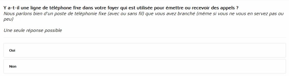 Ce questionnaire vise à comprendre l’utilisation des lignes de téléphones fixes et mobiles et des forfaits internet. Il s’agit également de définir les parts de marché des différents opérateurs actifs sur le territoire français et la répartition des utilisateurs et consommateurs.